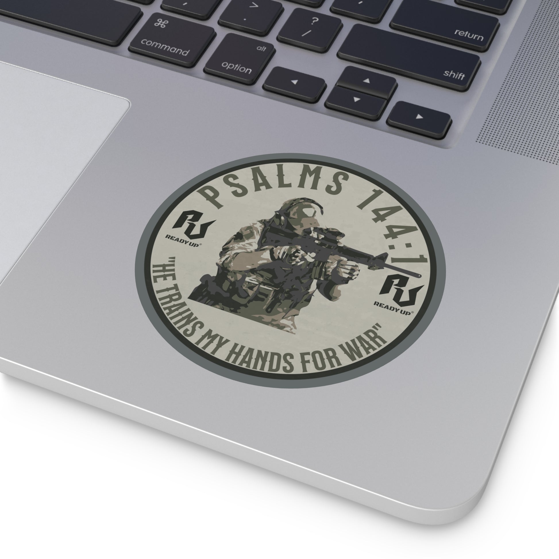 Lock in your faith and your grit with this tactical Ready Up® vinyl sticker. Featuring Psalms 144:1 — “He trains my hands for war” — this design is built for warriors who know that strength, skill, and victory come from the Lord. Perfect for your water bottle, rifle case, laptop, or truck, this durable sticker is more than decoration — it’s a declaration of purpose.